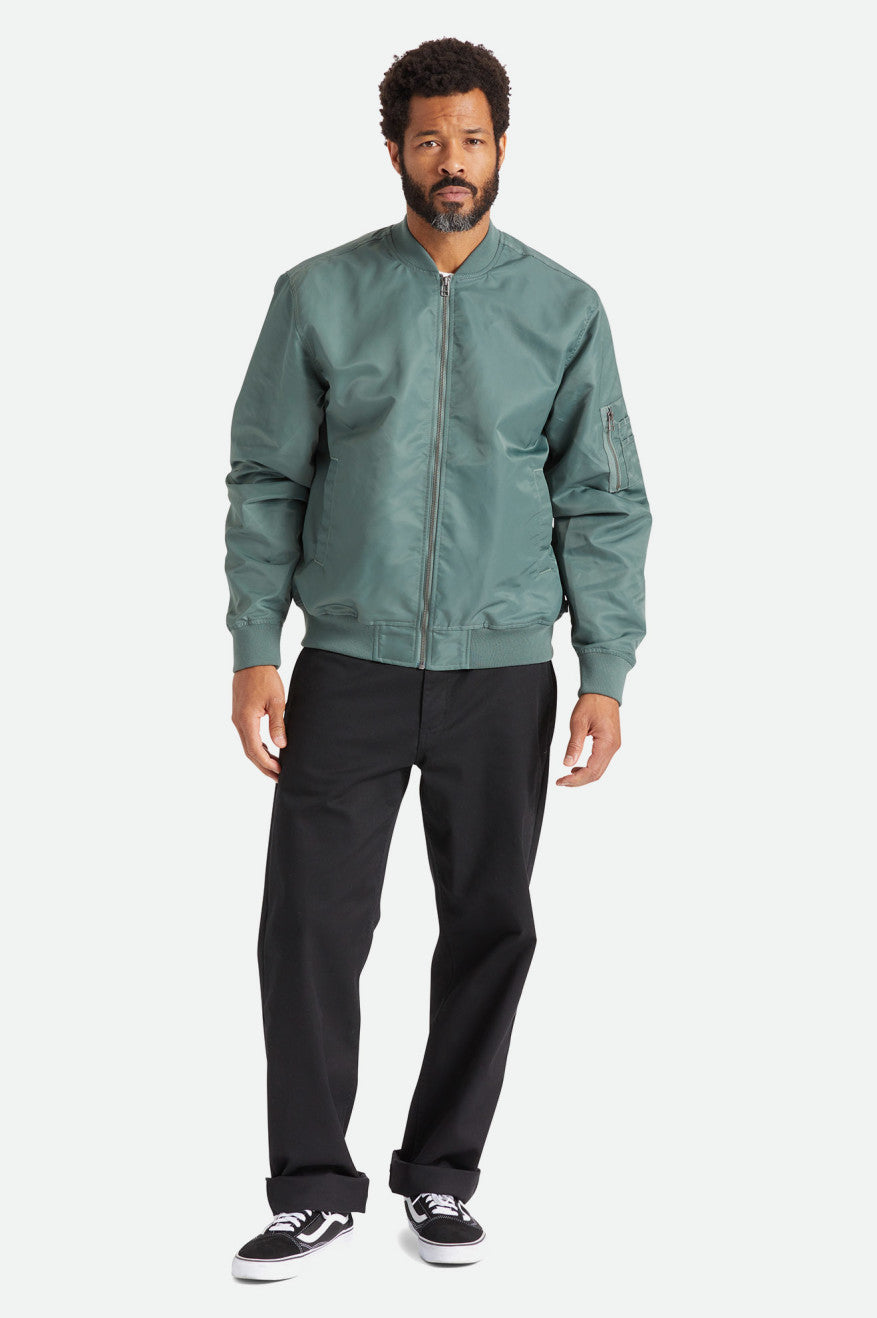 The Dillinger LW Bomber Jacket is an unlined version of our military-inspired silhouette. Ideal for warm weather and shoulder seasons, it’s made from a modern nylon fabric with a subtle sheen. Finished with welt pockets, a faux leather patch and zippered sleeve pocket.