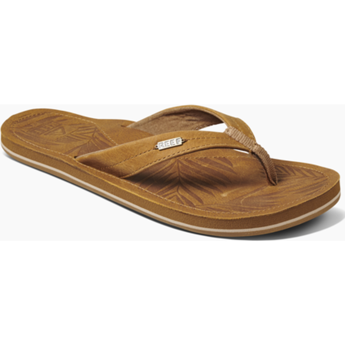 The flip flop, refined and redefined. Take the buttery full-grain leather straps with antique metal hardware details. The premium leather embossed footbed over a cushy midsole crafted from sustainable sugarcane. The subtle leather logo detail. Sigh. They're perfect.