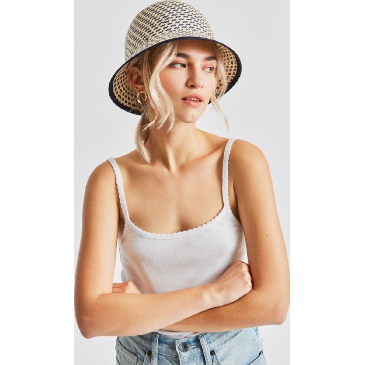 Essex Straw II Bucket Hat - Navy/Tan