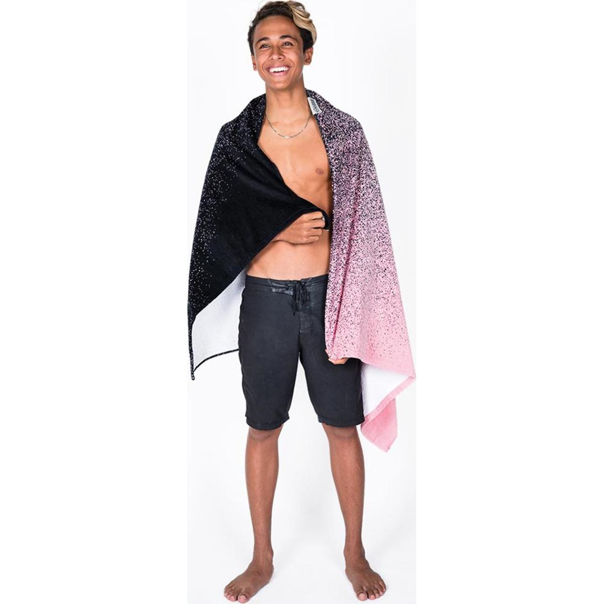 Drift through the spectrum and fade into your happy place with a two-tone towel that lets your personalities meet in the middle. 100% premium cotton, ultra soft printed velour, super absorbent hanging terry-loop for quick drying, perfectly sized for roadside changing. Dimensions 58 x 33 | 148cm x 84cm.
