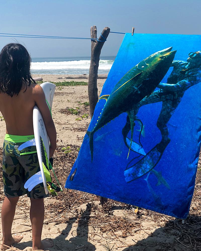 Submerge yourself as we dive deep with our favorite restaurant, Fish 101, for our newest surf towel collaboration. 100% premium cotton, ultra soft printed velour, super absorbent terry-loop, perfectly sized for roadside changing.