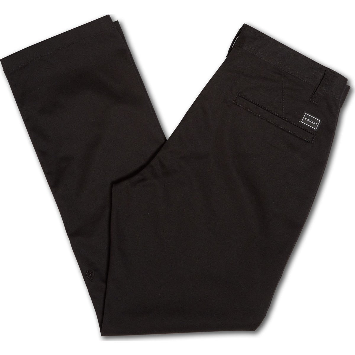 Introducing the Frickin Skate Chino with heavy weight cotton twill fabric that's thick and durable. Get loose in the roomy leg openings, at 18 inches—this new cut bigger and better then ever. we snuck a Stone hit inside the cuff that appears when you roll up them up, which is definitely going pop off the page when captured with a fisheye lens. Of course, you can expect the same reliable fit and feel as our regular chinos and signature details such as Volcom’s asymmetric back yoke, metal buckle button, back welt pockets and a stone embroidery on the left leg.