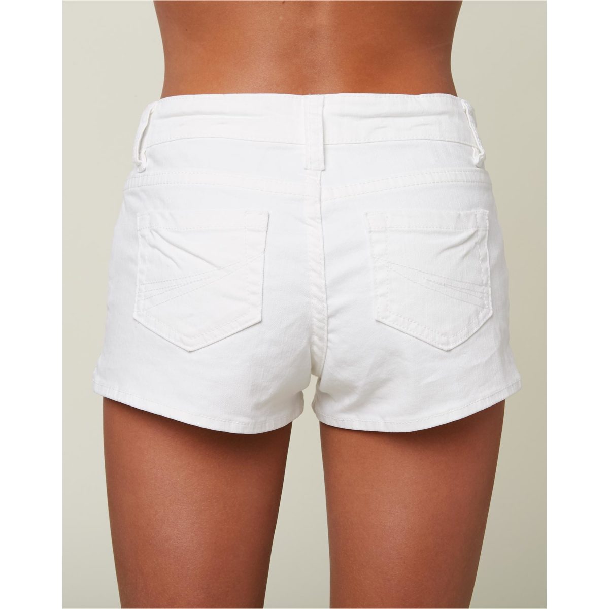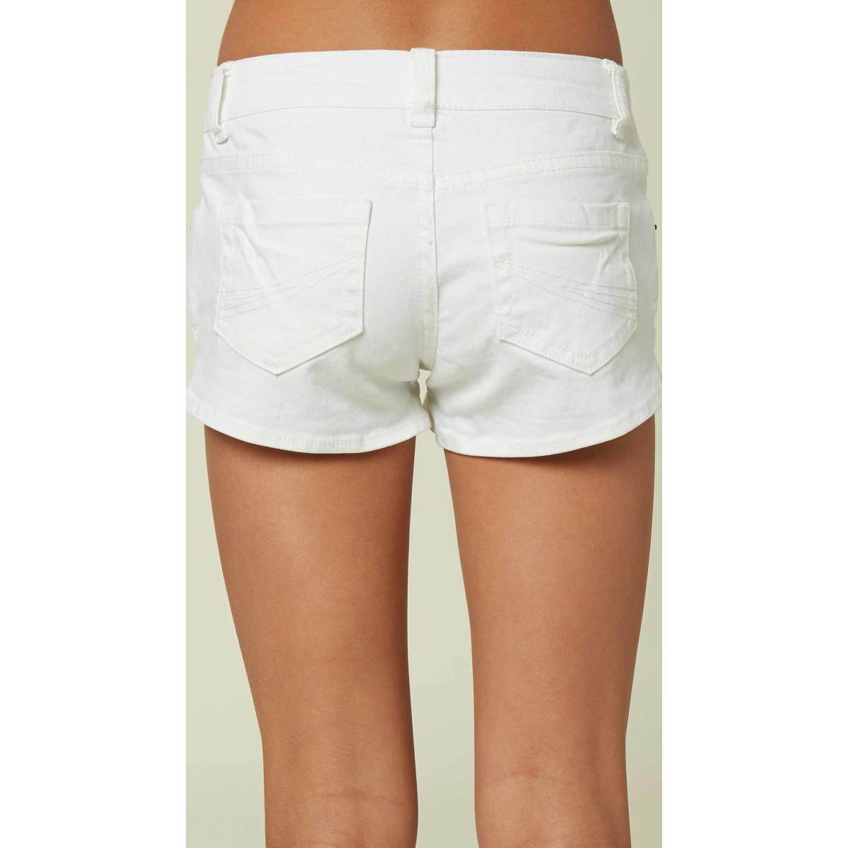 Denim short, 98% cotton 2% elastane, 2" inseam, 5 pocket styling, interior WB adjusters sizes 4-10, logo flag label