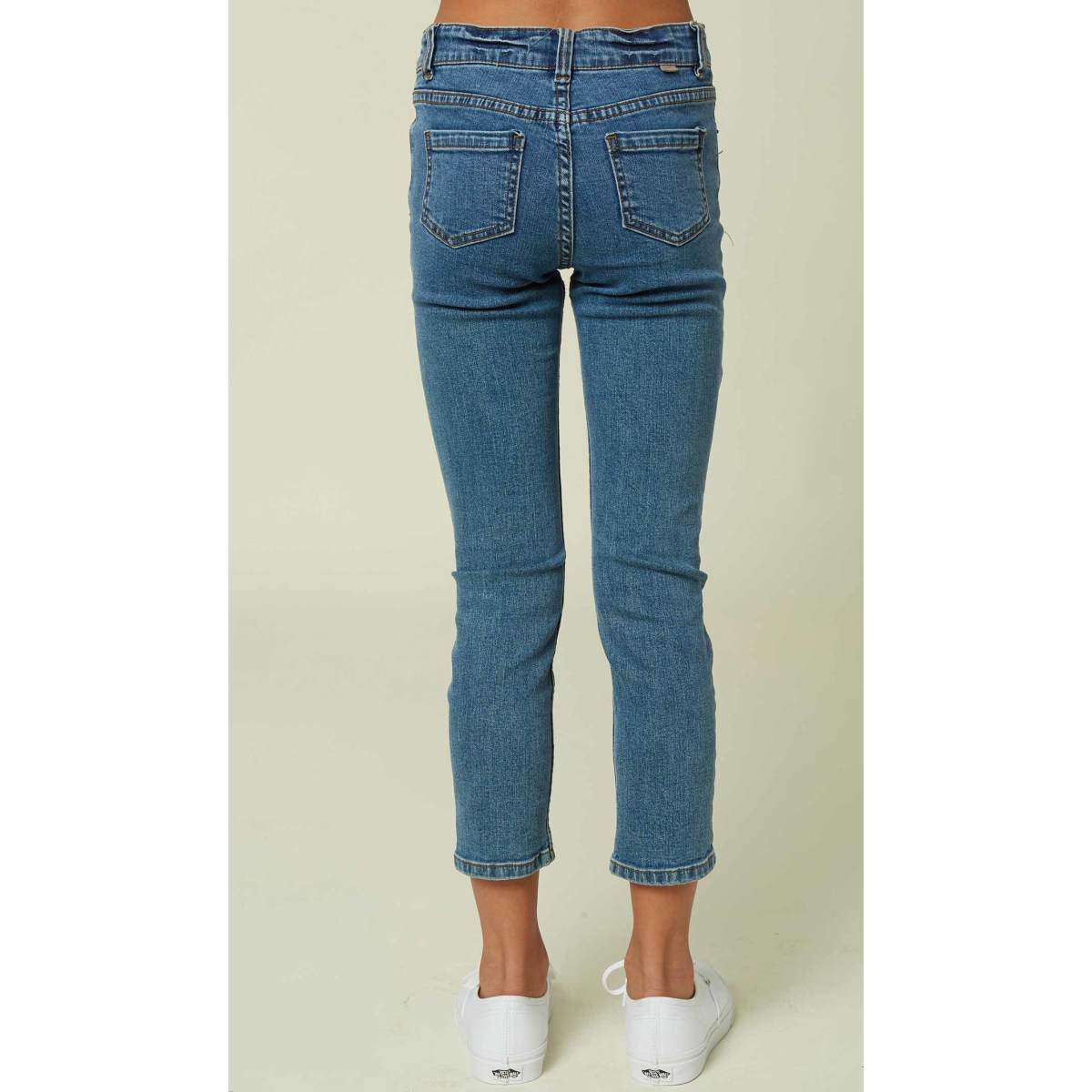 Denim pant, 98% cotton 2% elastane, 23" inseam, 5-pocket styling, zip fly, interior WB adjusters sizes 4-10, logo flag label