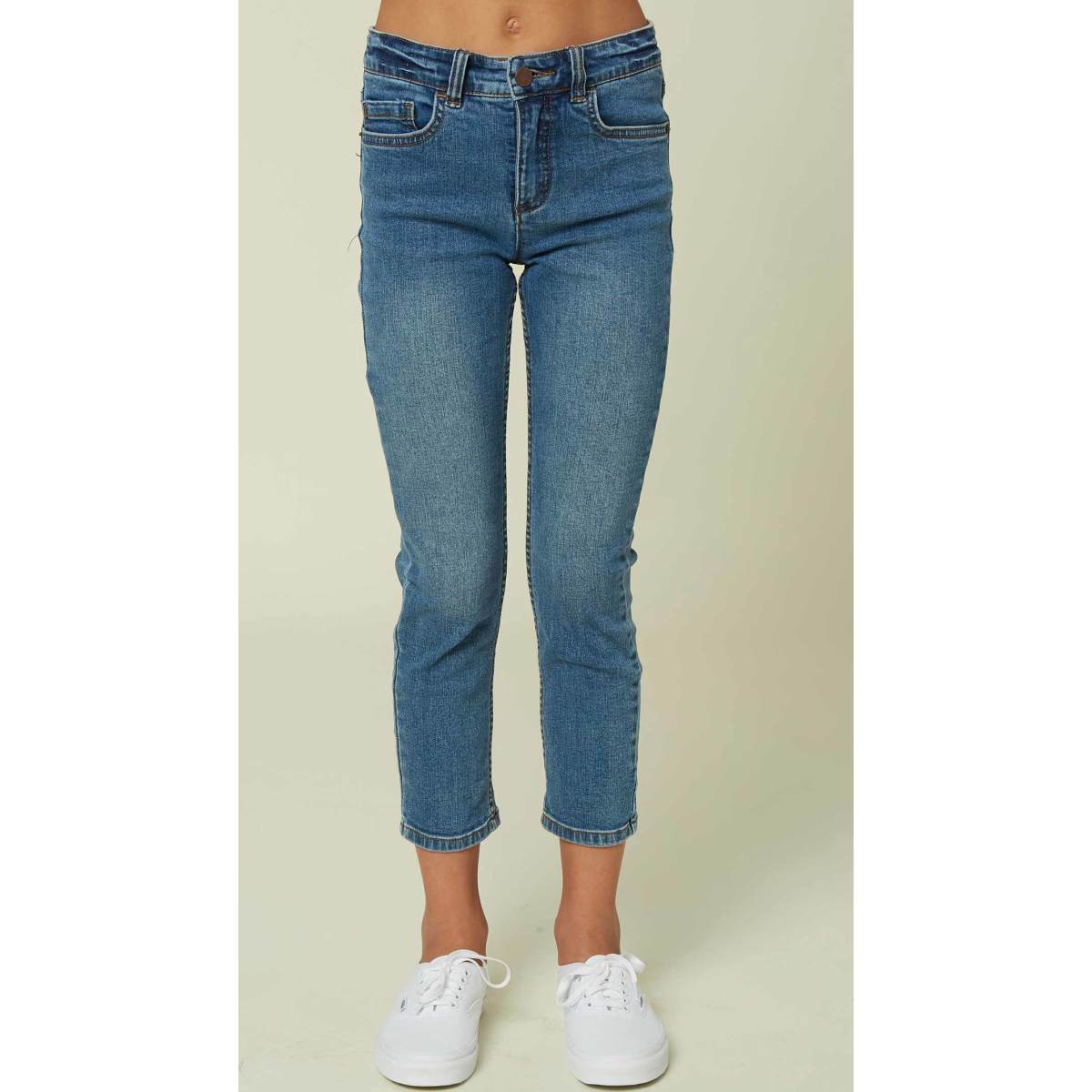Denim pant, 98% cotton 2% elastane, 23" inseam, 5-pocket styling, zip fly, interior WB adjusters sizes 4-10, logo flag label