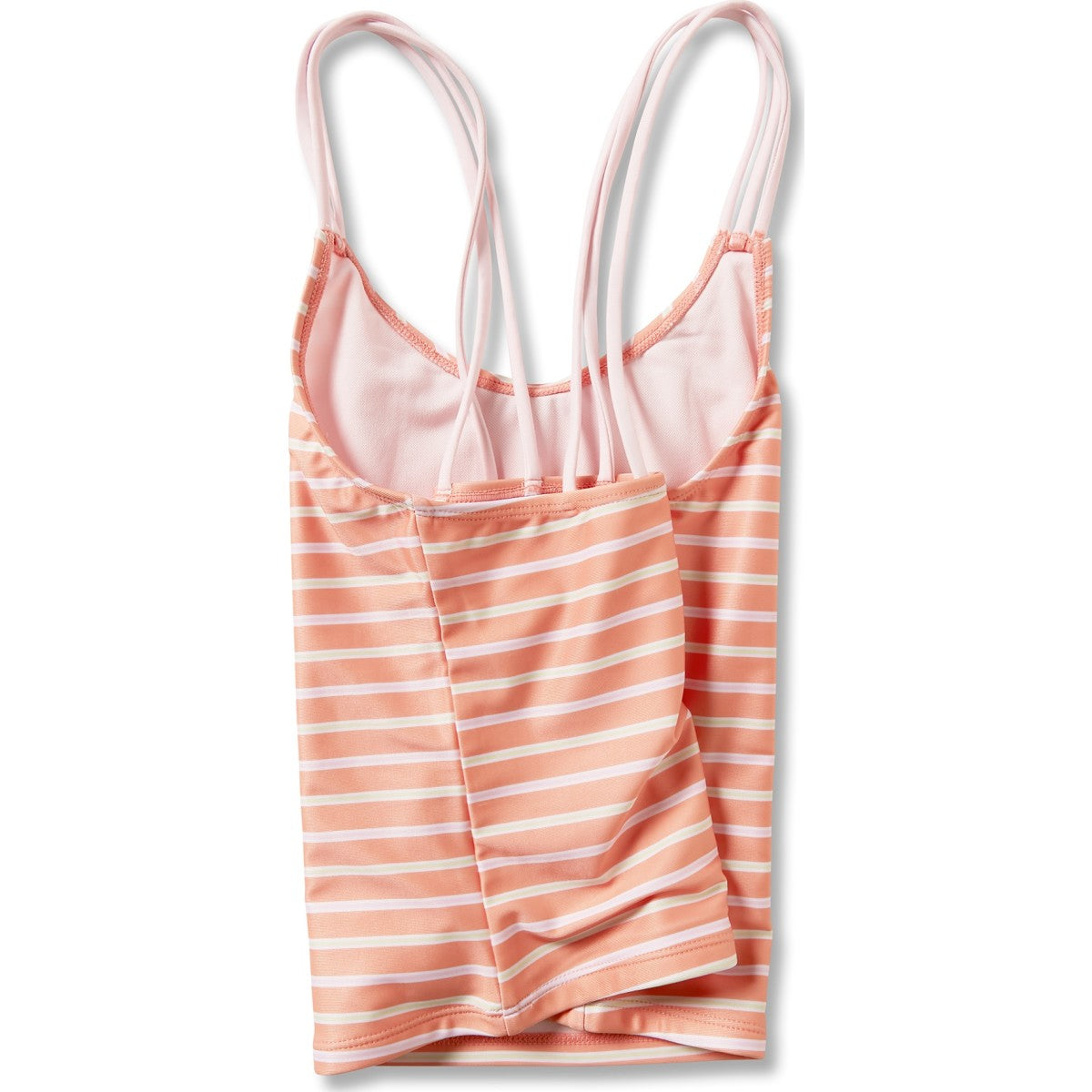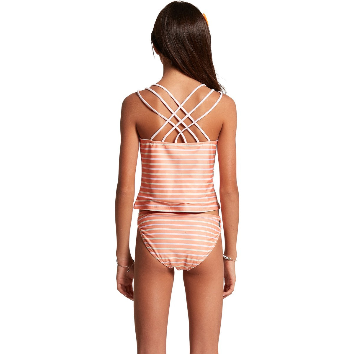 A stylish and functional look, the striped In Line Tankini Set has a mulit cross strap detailing on the Tankini top's back and on the swim bottom's side.