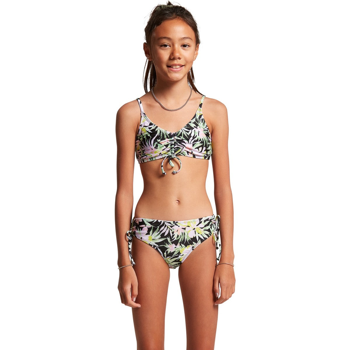 With an eyecatching tropical flower pattern, our girls Off Tropic crop set swim top and bottom is a modern classic island print design.