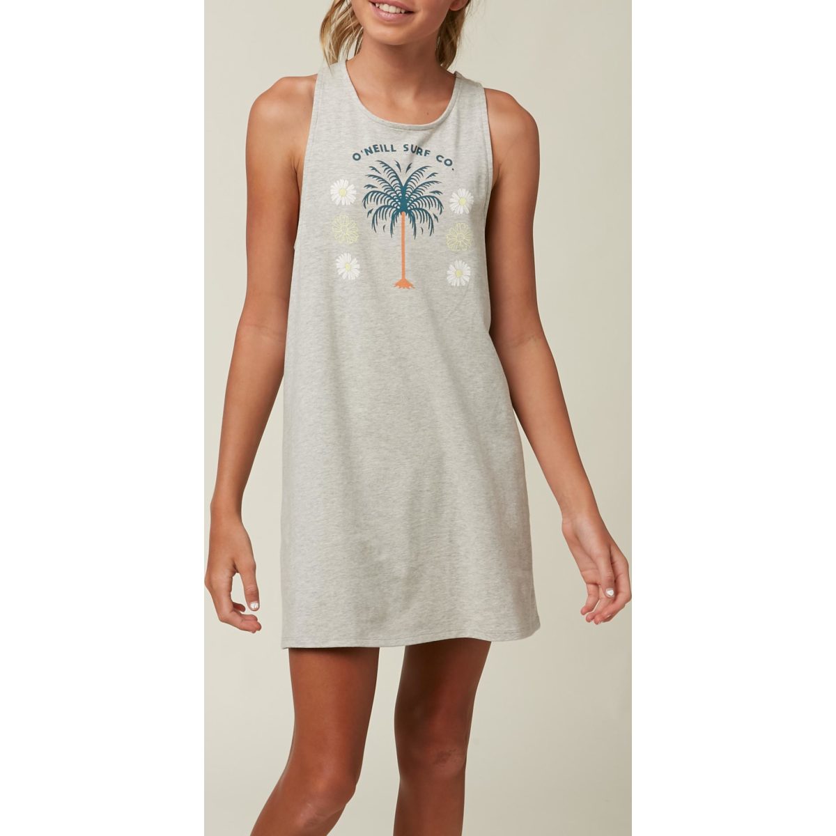 Knit dress, 98% cotton 2% elastane, 24" CF length, racerback, graphic art, logo patch