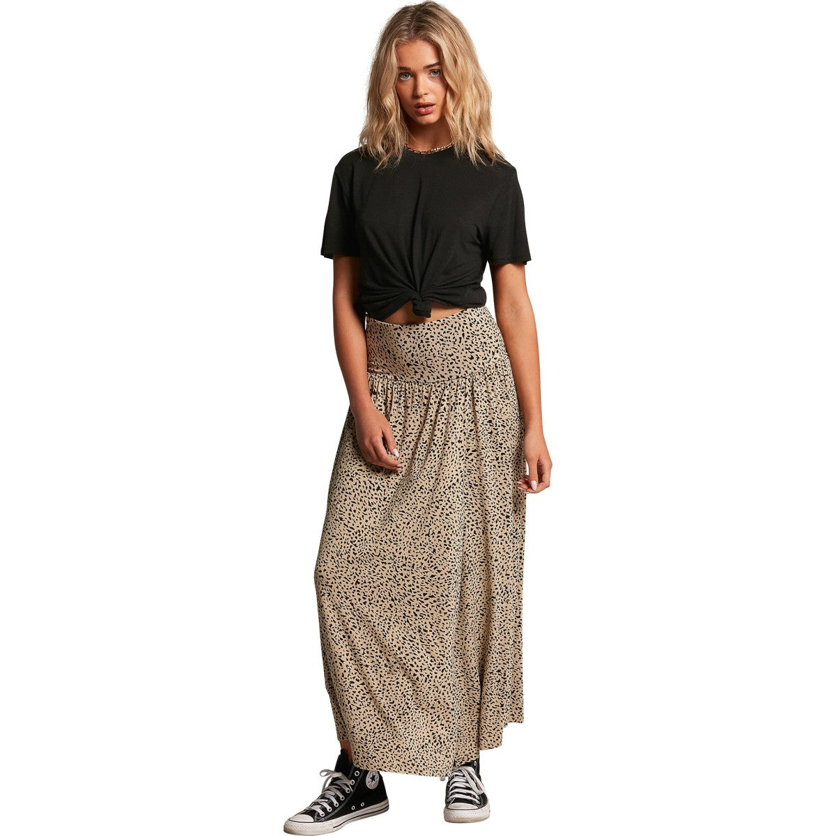 Unleash your inner lioness and run wild. This high waisted knit midi skirt is made with super smooth viscose fabric for a free-flowing fit.