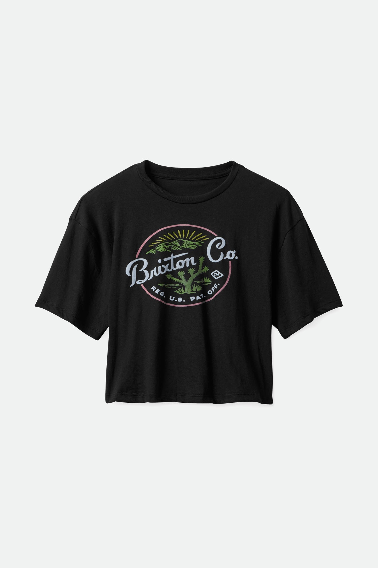 The Joshua Skimmer Tee has a roomy fit and is designed to land just below the waist. It has drop shoulders, longer sleeves and a front screen print inspired by epic Joshua Tree.