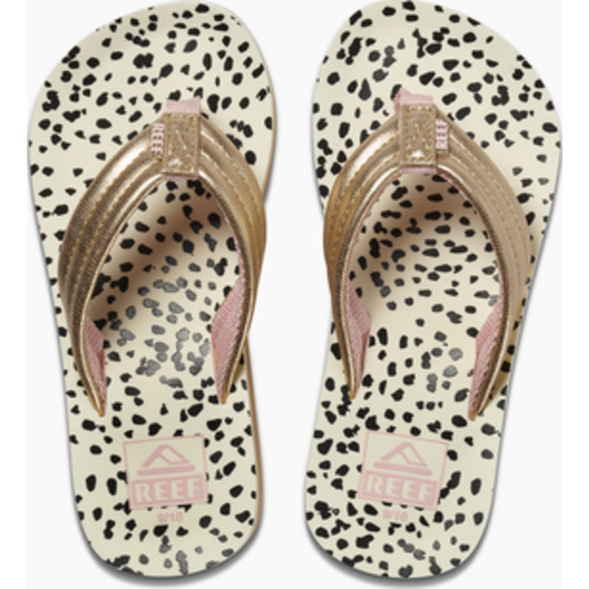 Our low 1.25-inch wedge has just enough lift to make her feel grown up. A stripe along the heel adds a pop of color. With padded straps and a contoured footbed.