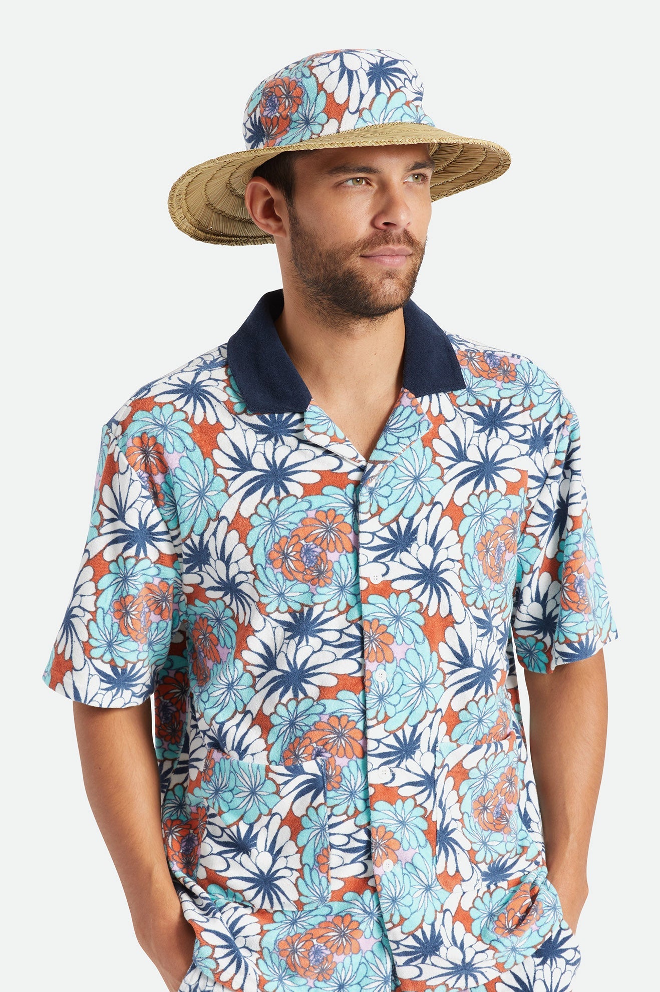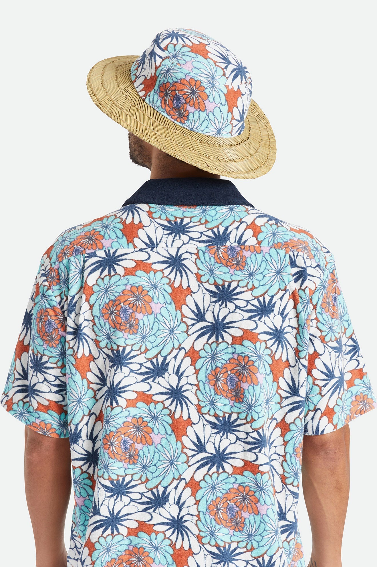 The King Sun Hat is a standout piece that combines a grass straw brim with a mixed fabric crown. The 3” circular brim offers 50+ UPF coverage from harmful sun rays.