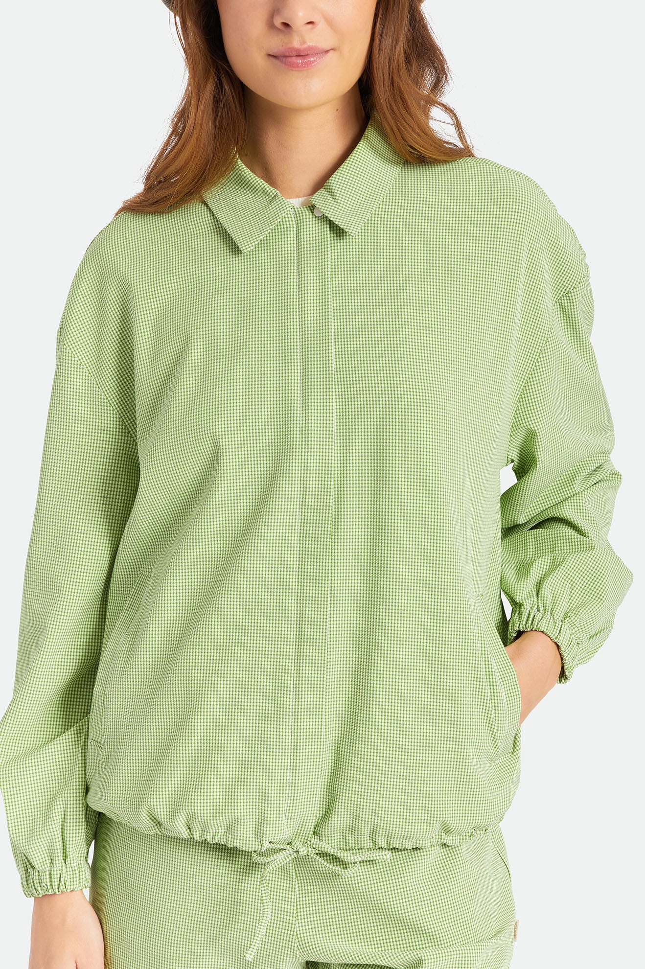 The Leeds Jacket is a lightweight zip-up with a crisp collar. It has welt pockets, a drawcord waist and tricot body lining. Pair it with the Gingham Runner Short for coach-style comfort.