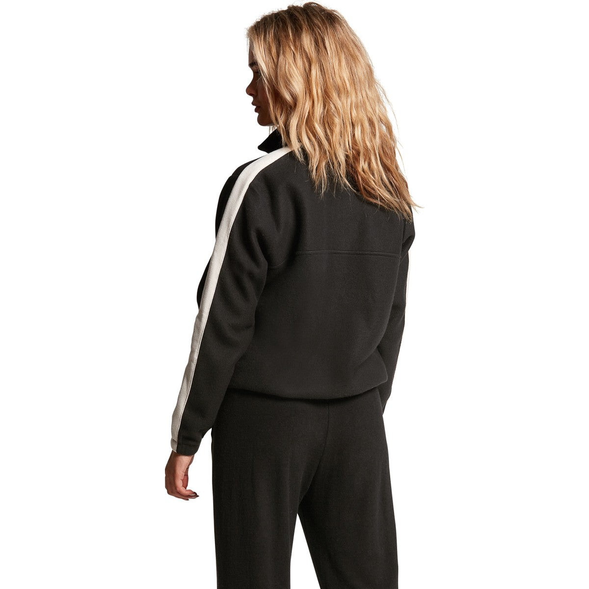 For those overcast mornings when you need a little extra warmth, the Lived In Lounge Mock Neck track-style jacket is a cozy style with a loose fit through body and sleeves with elastic at the cuffs and waistband for a put together look.