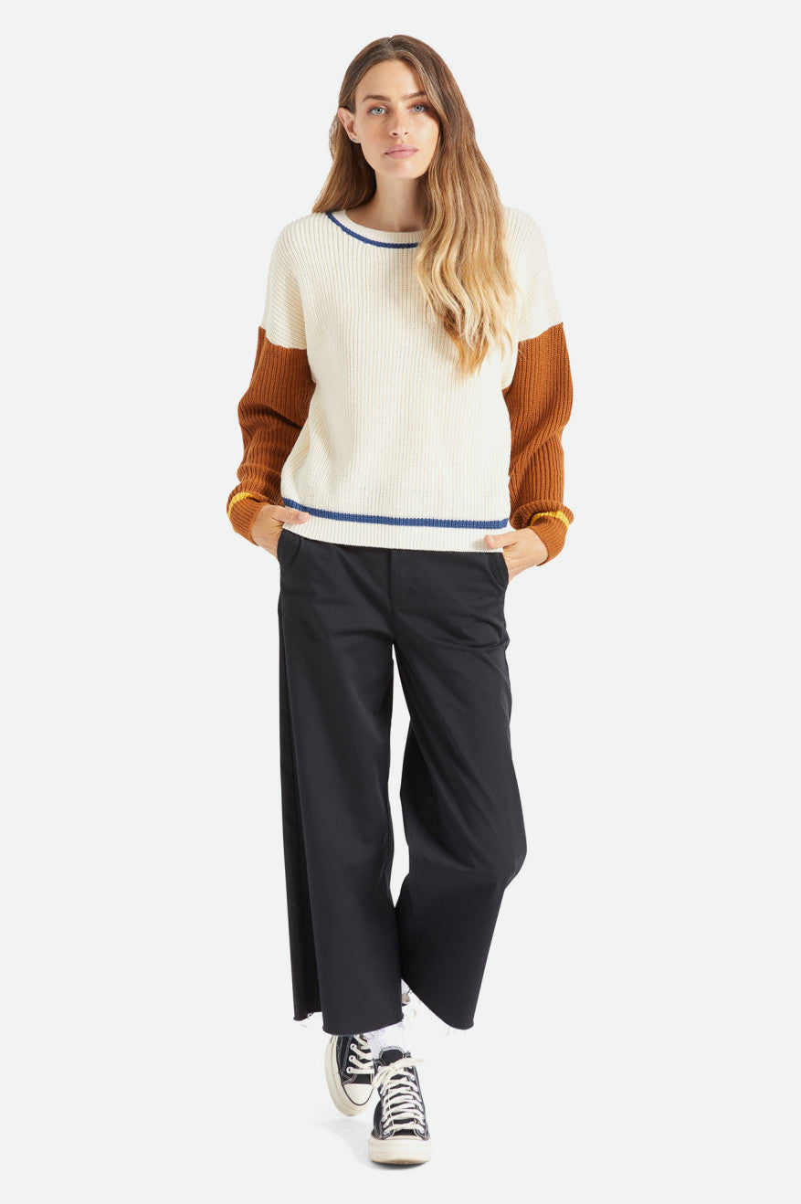 Pair it with trousers, pull it over a dress or layer it under your overcoat, the Love Song Sweater is an immediate favorite. Crafted with buttery soft acrylic, it has drop shoulders and a relaxed, slouchy fit. Contrast sleeves and hem striping.