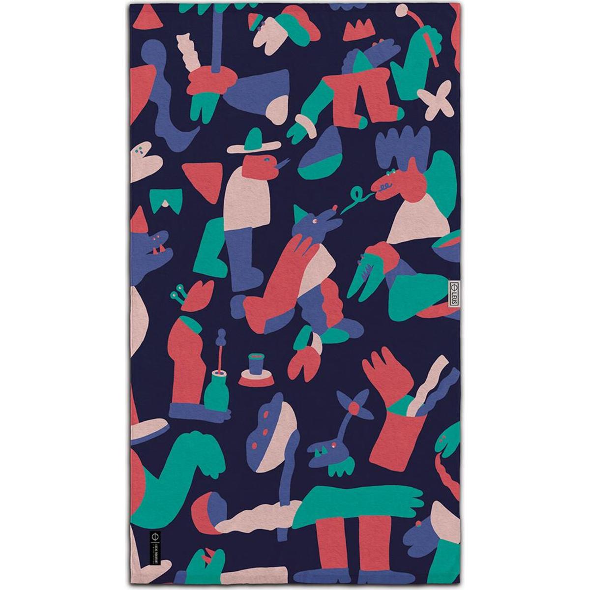 Back for his second collaboration, French artist Lucas Beaufort added a splash of pastel jewel tones to his quirky characters in this all-over print. Inspired by his dreams and surroundings, these hand drawn funky swim over a velvety sea of deep blue. 100% premium cotton, ultra soft printed velour, super absorbent hanging terry-loop for quick drying, perfectly sized for roadside changing.