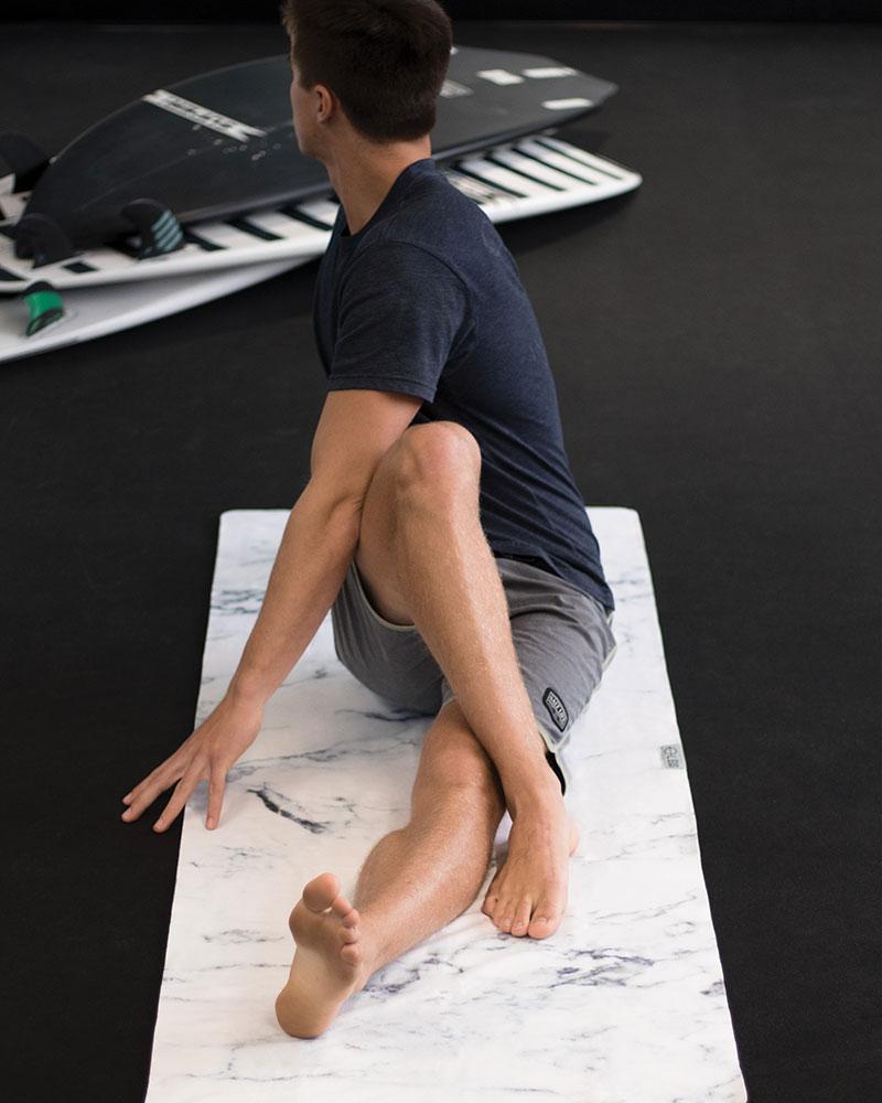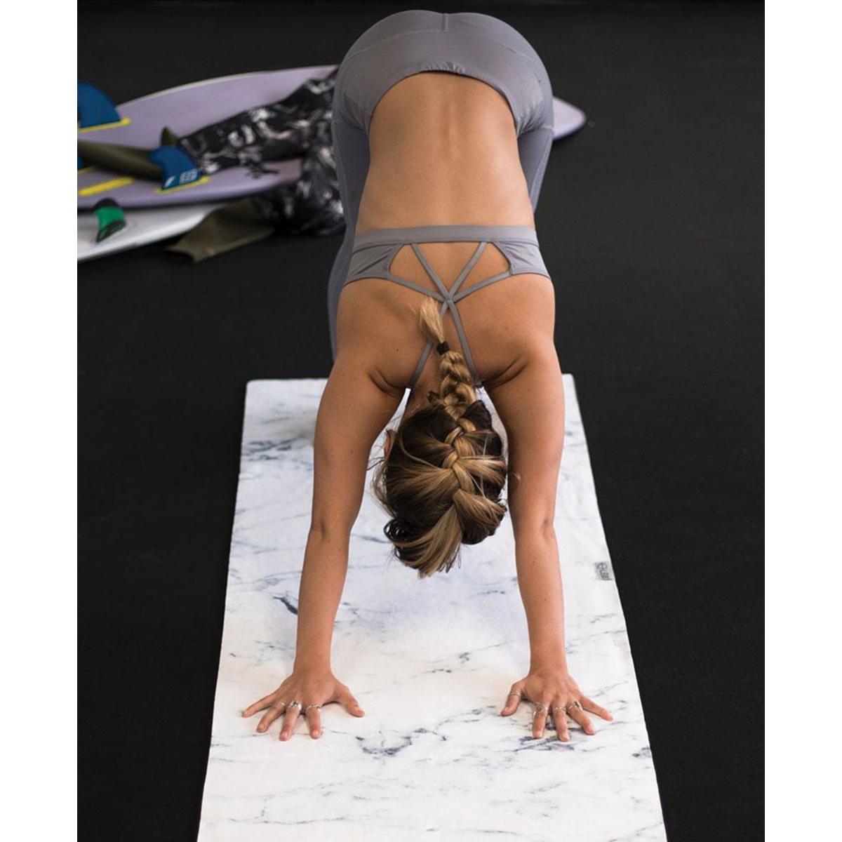 Ditching geometrics for geodes, put in work or kick it on a mock marble slab with a soft velour front. Use with hot yoga, yin yoga, and restorative yoga practices. Anti-microbial microfiber, soft suede touch with raw cut edges, ultra absorbent, slip resistant, grips with moisture.