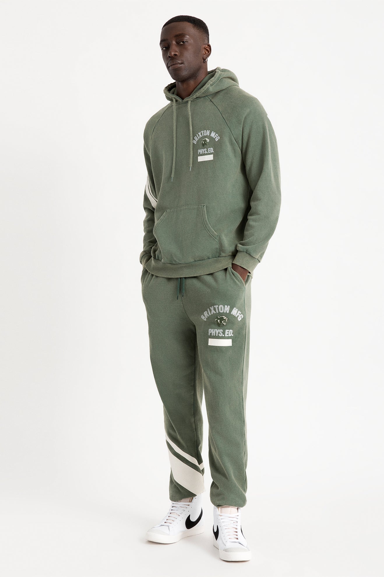 A warm classic made to suit your easy mood. The Phys. Ed. Raglan Hood is a relaxed, cotton, and polyester blend top built to feel like you've had it for years. With a Raglan sleeve and a flock screen print, which adds a velour-like texture. Perfect for lo
