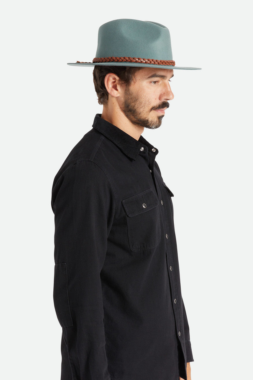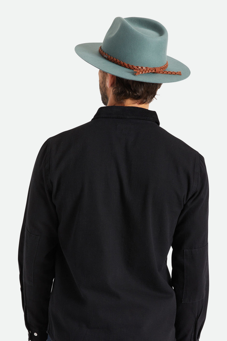 This fedora combines the classic styling of our Messer silhouette with a slightly larger brim for a Western aesthetic. Detailed with a premium braided leather band and metal headwear plaque. Dial in the perfect fit with our hidden size adjuster. Constructed from 100% cruelty-free wool, a voluntary standard that ensures the ethical treatment of the animals from which it is sourced.