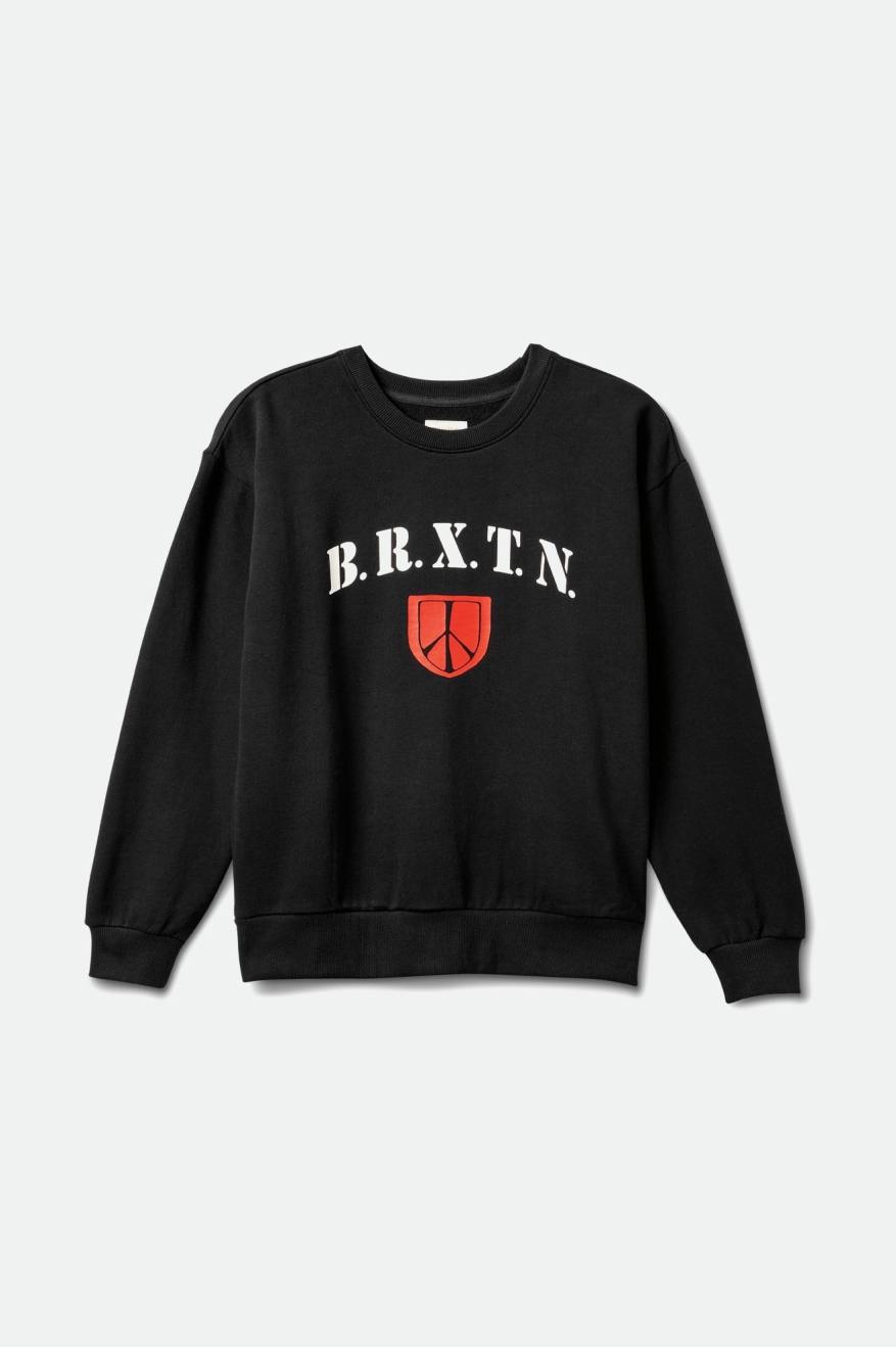 The Peace Shield Crewneck is a cozy sweatshirt decorated with a military-inspired front screen print. Built with our relaxed fit, it has room to bundle up with its drop shoulders and balloon sleeves. Made from a partly recycled cotton poly blend for a better world.