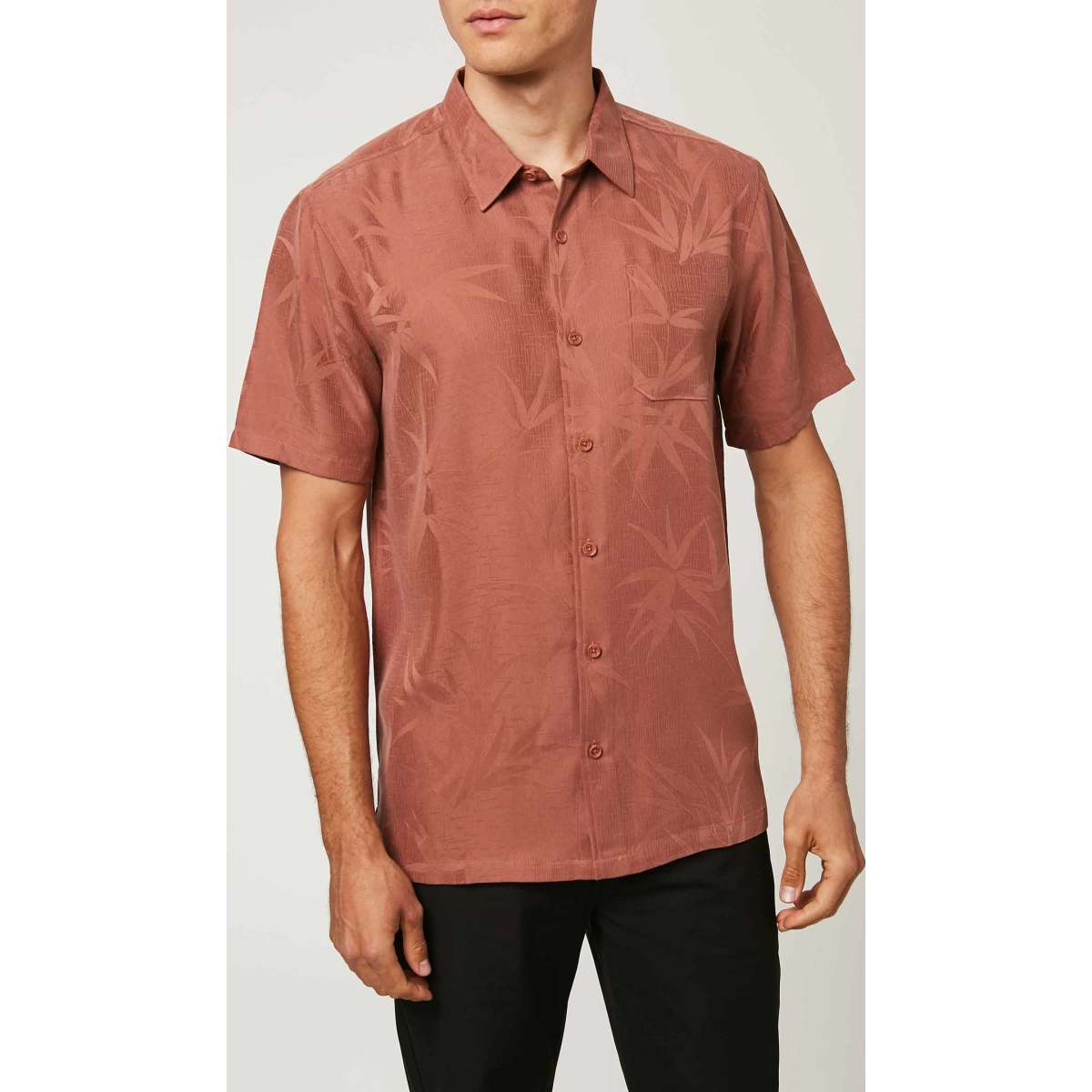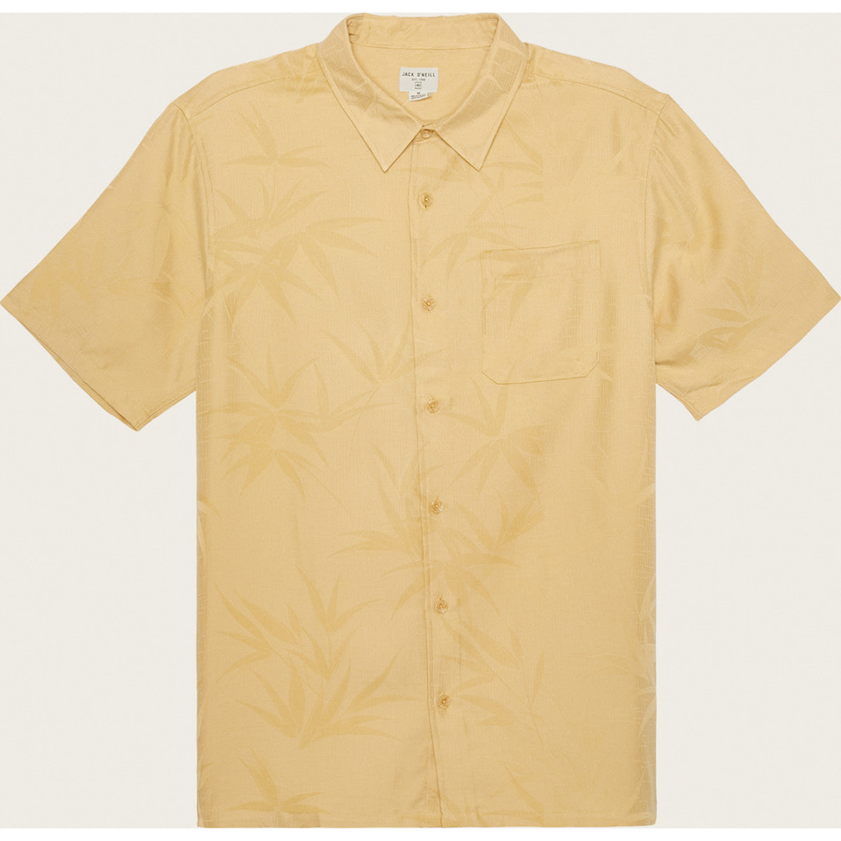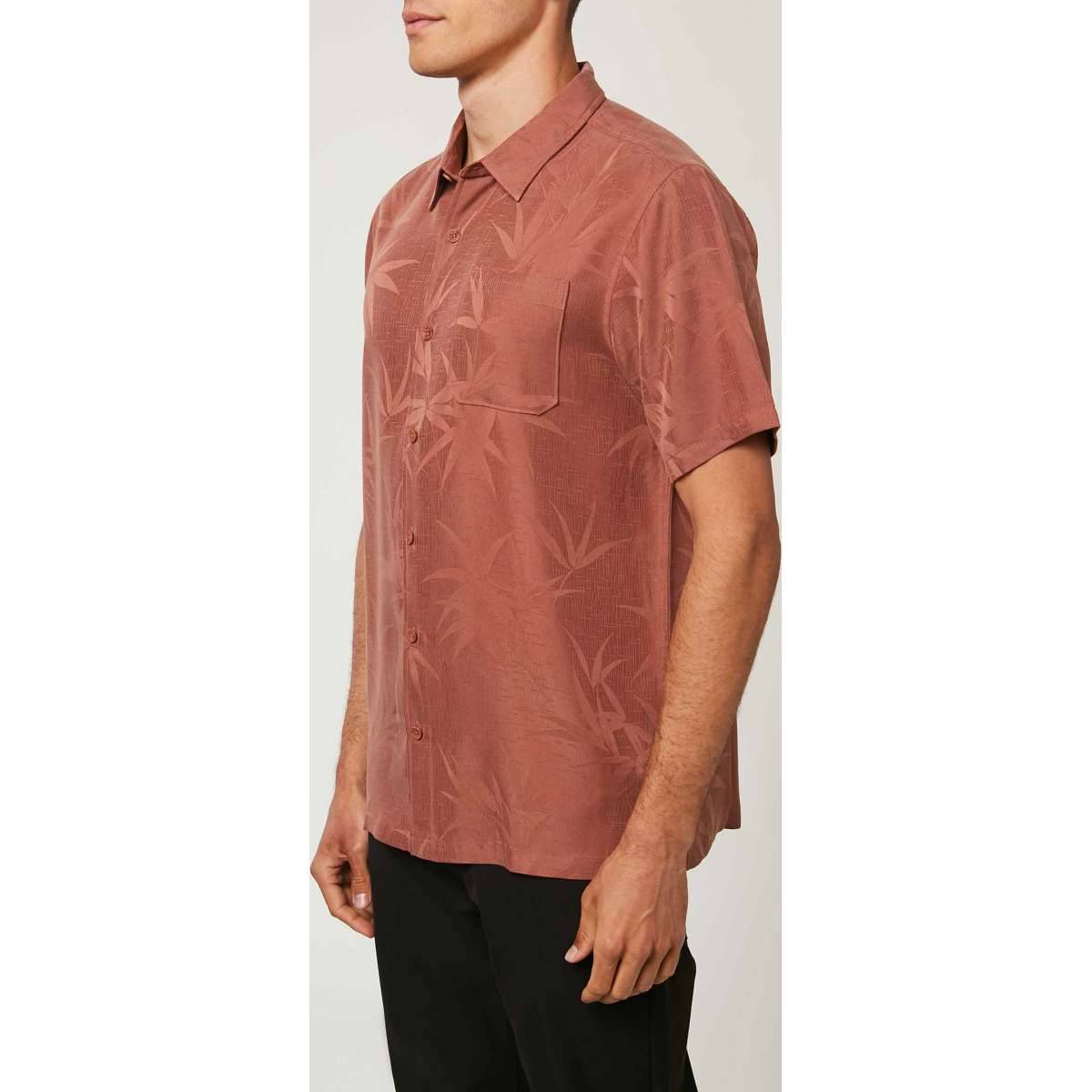 Relaxed Fit Polynosic blend Jacquard short sleeve shirt Matching buttons, straight hem body Woven logo label at side seam