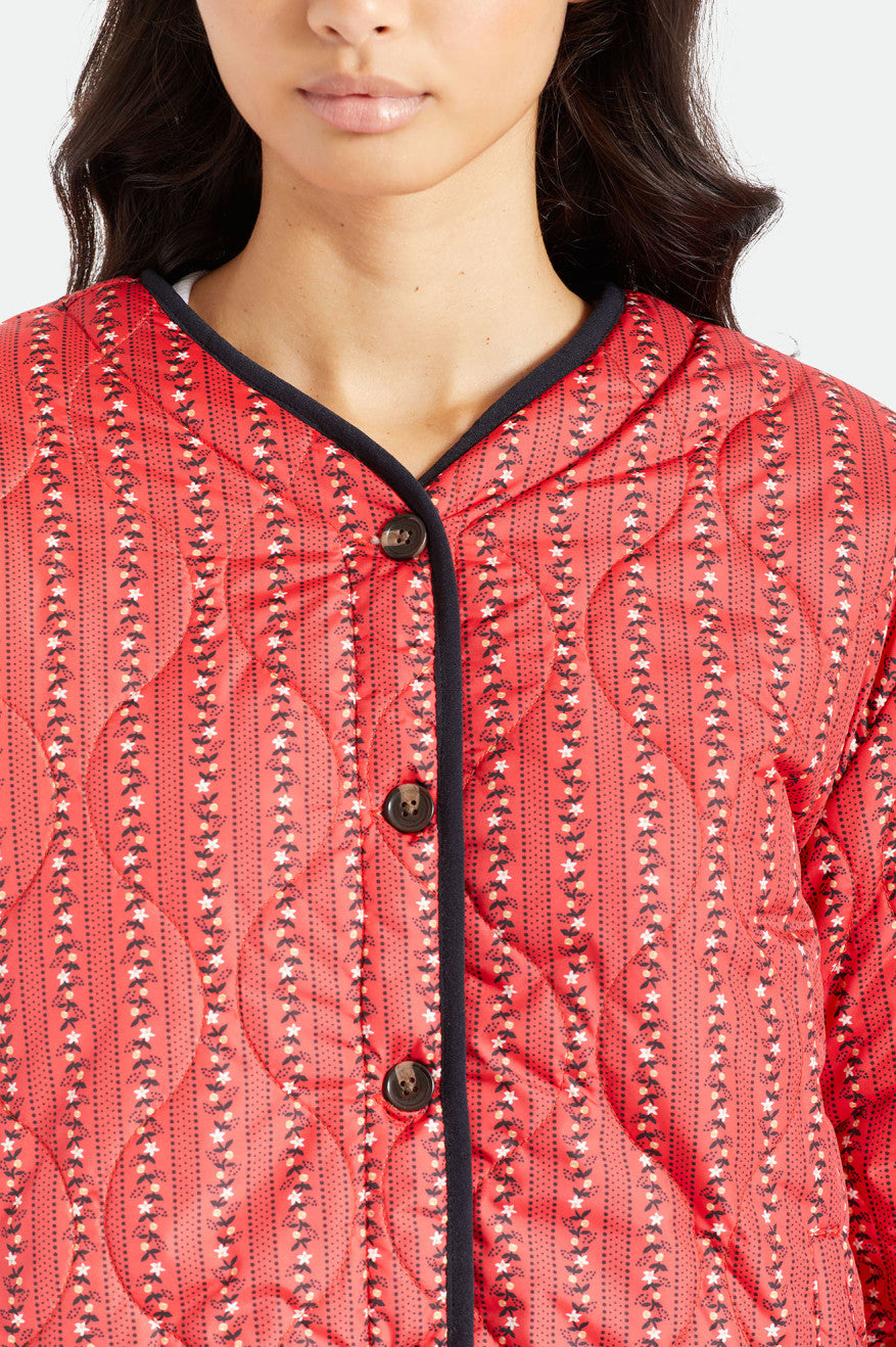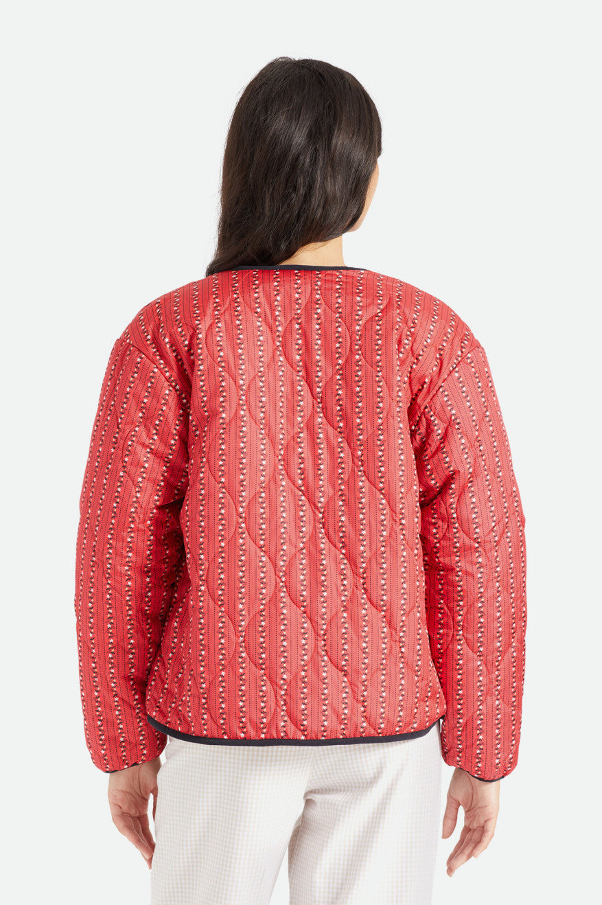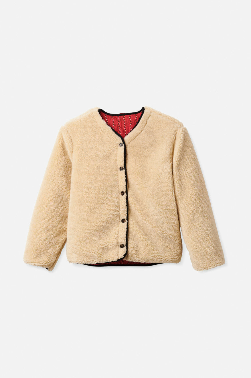 Like the perfect vintage piece you've been searching for, this is a bomber-inspired jacket with a just-right fit. The interior is lined with cozy sherpa fleece while the exterior boasts textured onion quilting. Reverse the jacket to show the fuzzy finish and turn your new favorite into a neutral layer. Detailed with horn buttons and elastic sleeve cuffs.
