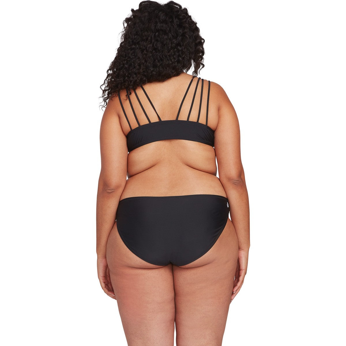 This strappy black swim top combines style, comfort, and utility. With over-the-shoulder strapping and a pull-over design, you won't have to worry about it coming loose in the surf. Made with Econyl® regenerated fibers, REPREVE® recycled fibers and water-saving Digital Sublimation Printing, the Simply Solid V-neck is a truly sustainable choice.
