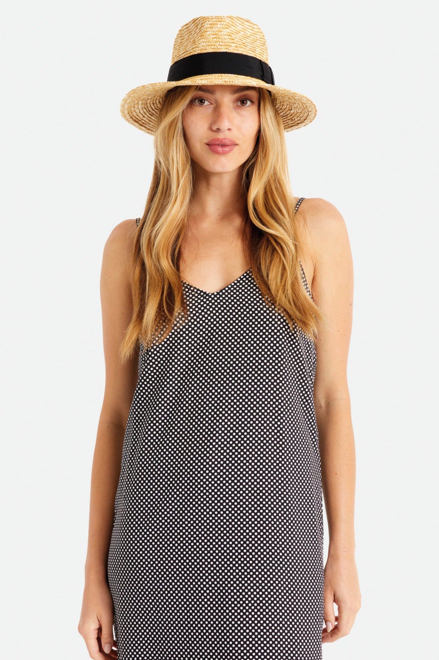 A perfect sunny-weather staple. The Joanna Short Brim hat has a grosgrain band, a metal headwear plaque, and an adjustable strap. Whether you are going for a stroll or off on an adventure, this hat is ready. This piece is the finishing touch for all your